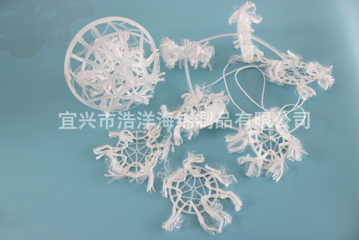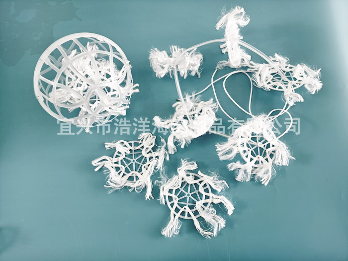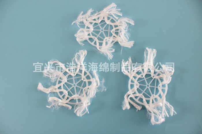 組合填料是在軟性填料和半軟性填料的基礎上發(fā)展而成的,它兼有兩者的優(yōu)點(diǎn)。其結構是將塑料圓片壓扣改成雙圈大塑料環(huán),將醛化纖維或滌綸絲壓在環(huán)的環(huán)圈上,使纖維束均勻分布;內圈是雪花狀塑料枝條,既能掛膜,又能有效切割氣泡,提高氧的轉移速率和利用率。使水氣生物膜得到充分交換,使水中的有機物得到處理。